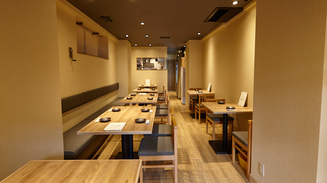 店内はラーメン店らしくコの字カウンターのテーブルが並びますが、白を基調としているのでスタイリッシュさが感じられます。