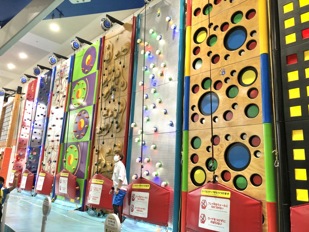 同じゾーンにある「クライミングウォールエリア」では、難易度の異なる14種類のコースのクライミングもできちゃいます。カラフルなウォールは登っても楽しく、映える写真の撮影にもぴったり!