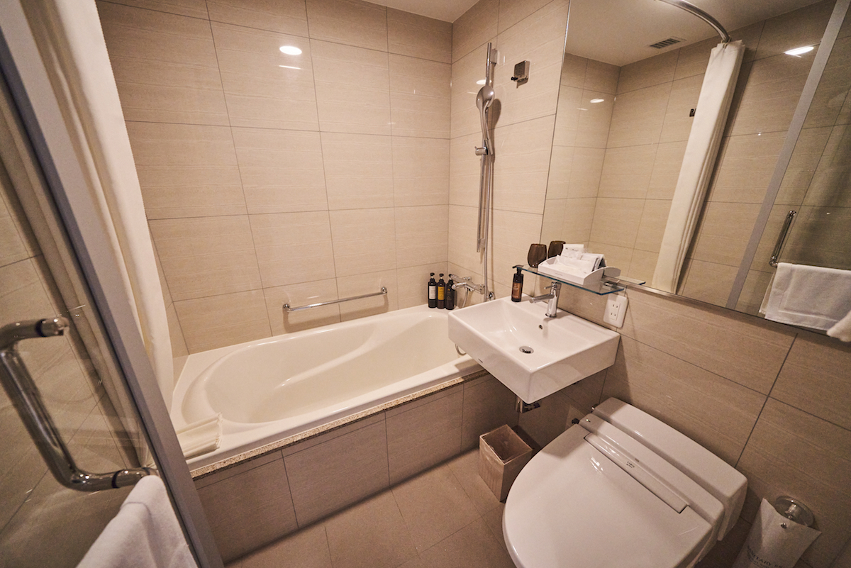 6タイプある客室のなかで「Modest」のみ、ユニットバスになりますが、おひとりさまワーケーションには全く問題なし!仕事が終わったらバスタブにアメニティの入浴剤を入れて、ゆっくり癒やされましょう。