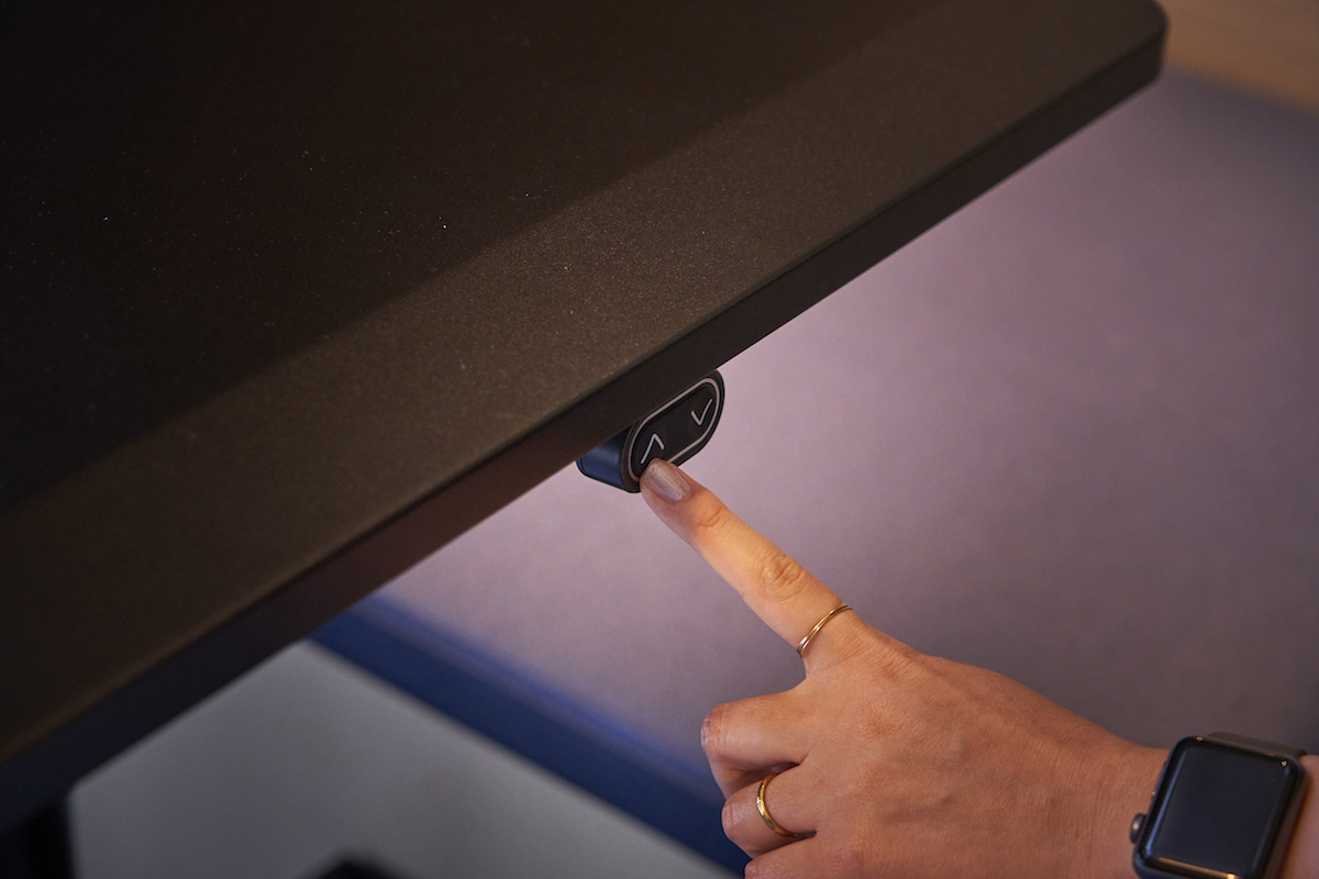 なんとデスクが高くなりました!こちらのデスクはスイスの家具ブランド「Vitra(ヴィトラ)社」の昇降デスクで、ボタンひとつで上げ下げができるスグレモノ。
