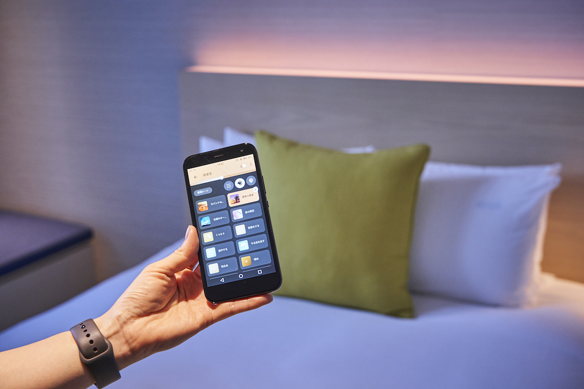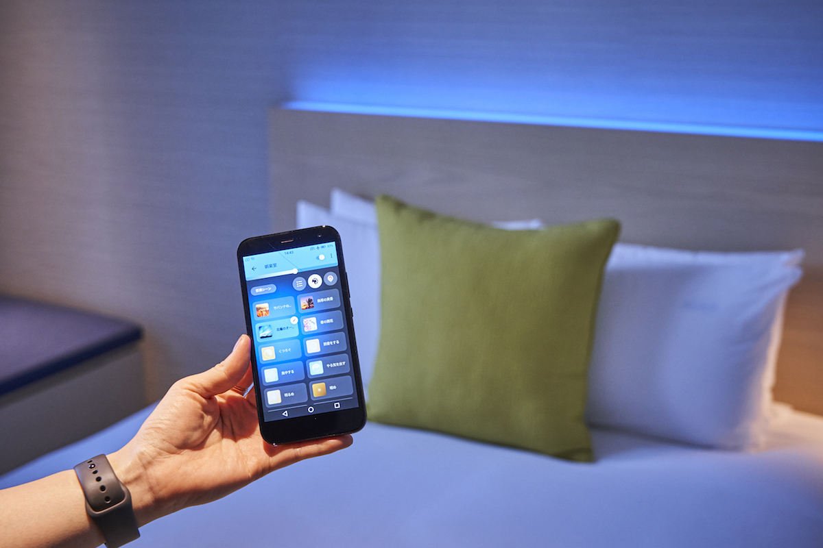 チェックイン時に渡された客室「Modest」専用のデバイスにも、仕事効率を上げてくれる仕掛けのひとつが。なんと、客室の照明を好みの色に変えられるんです。