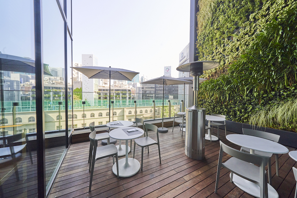 息抜きに4階のレストラン&バー「Anchor Tokyo」へ。疲れた頭を癒やすべく、店自慢のスイーツをいただきましょう。天気がいい日なら、テラス席がおすすめ。きれいなウォールグリーンと吹き抜ける風に癒やされます。
