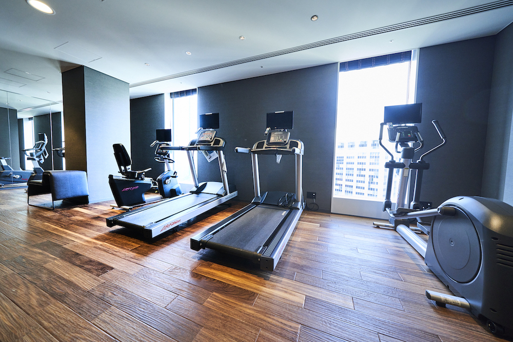 体を動かしてリフレッシュしたい人は、13階にある宿泊客限定のフィットネスへ(予約不要)。タオルの貸し出しや給水器、トイレもあり快適です。窓が皇居側を向いているので、抜けがよく開放感があります。徒歩5分の場所に日比谷公園や皇居があるので、散歩やランニングでリフレッシュするのもおすすめ。