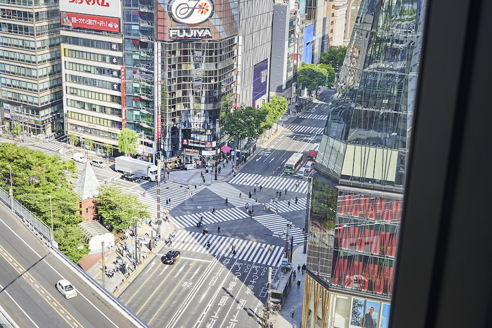 銀座を象徴する数寄屋橋交差点を見下ろす眺めは、記念撮影する人も多いとか。行き交う人や車がおもちゃみたいで、ずーっと眺めていられます。