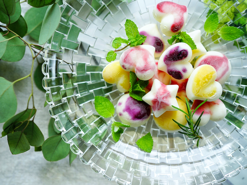 製氷皿でも簡単に取り出せますが、最近では100円ショップにもかわいいシリコン型がたくさんありますので、ぜひシリコン型を使っていただきたいです。