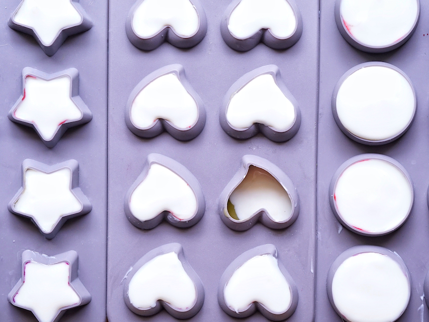 型に流し込み、冷凍庫で一晩冷やし固めます。