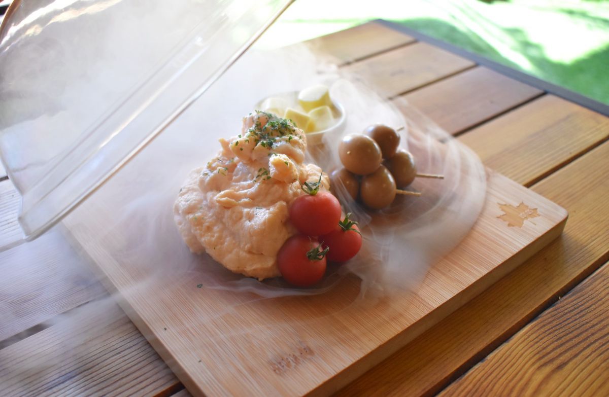 スモークマシーンを使って、タラモサラダやチーズの燻製にチャレンジ