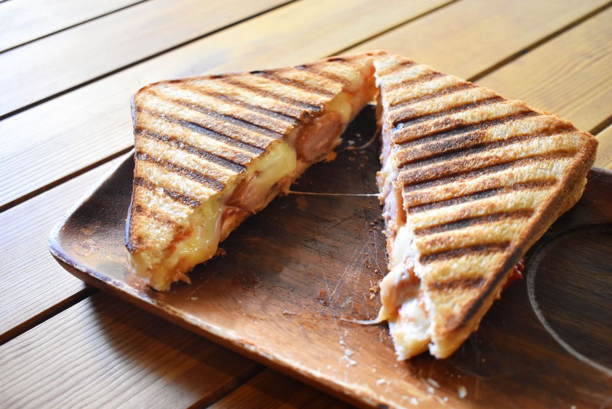 ホットサンドを半分に切ると、チーズがトロトロに溶けていておいしそう。食べてみると、パンの耳までサクッと香ばしく焼けていて、中はふわふわ! ジューシーなソーセージと濃厚なチーズの組み合わせはボリュームも満点で、お腹がいっぱいになります。