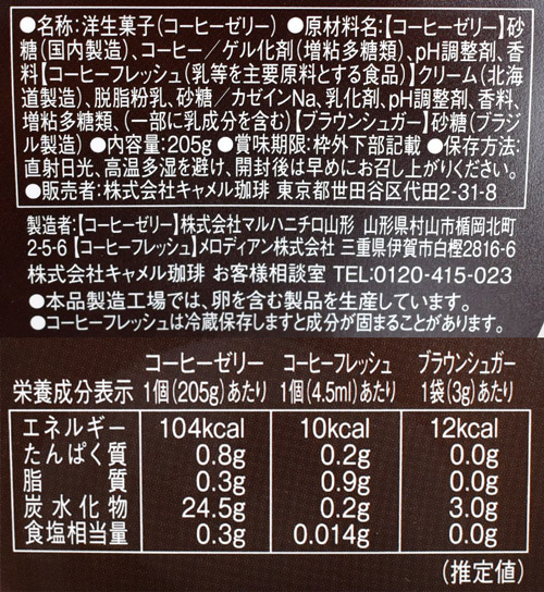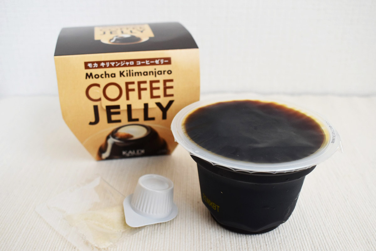 まずご紹介するのは、コーヒー専門店ならではの贅沢な味わいが堪能できる「モカキリマンジャロ コーヒーゼリー」205g 297円。ゼリーはエチオピアのモカコーヒーと、キリマンジャロコーヒーがベース。コーヒーフレッシュのほか、ブラウンシュガーが付いているのもユニークです。
