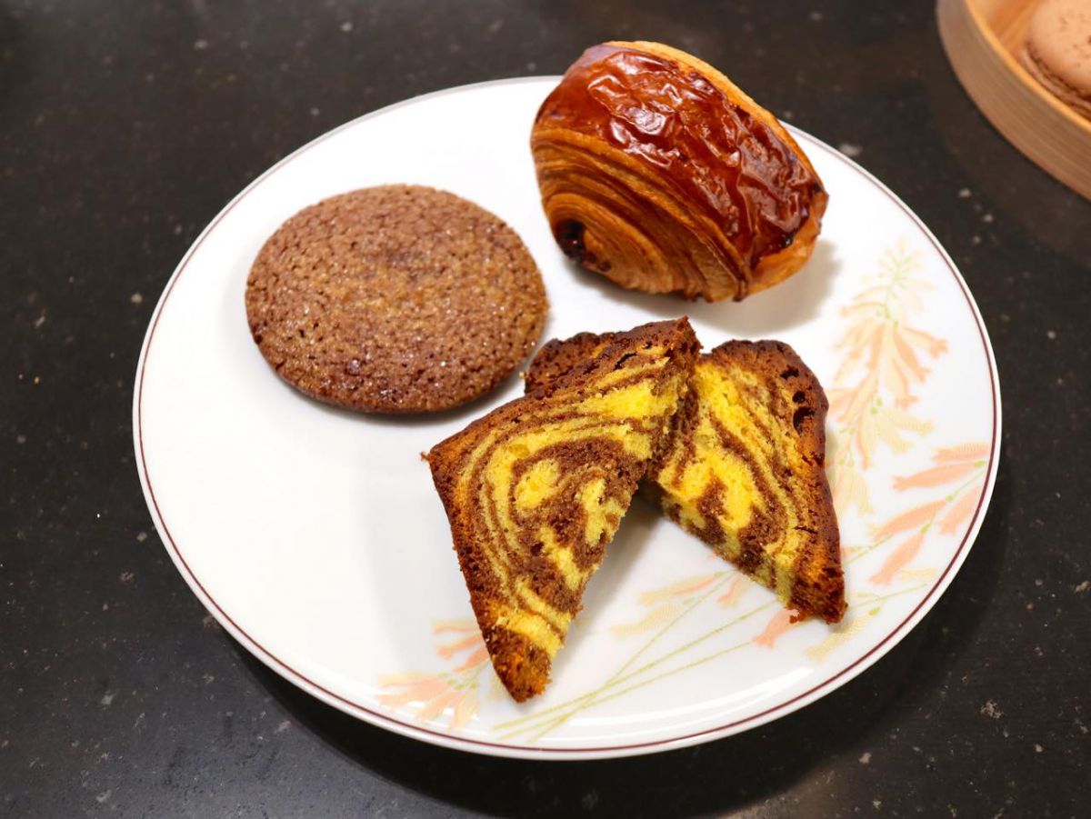 香り高くサクサクに焼き上げられた新作の「パン・トゥ・ショコラ」、バターケーキとチョコレートケーキのマーブルパウンドケーキ「ケーク・マルブレ」、しっとりとショコラ風味が味わえる「サブレ・ディアマン」にもシェフ・パティシエのこだわりが詰まった味わいが楽しめます。食べきれない場合はテイクアウトも可能です。