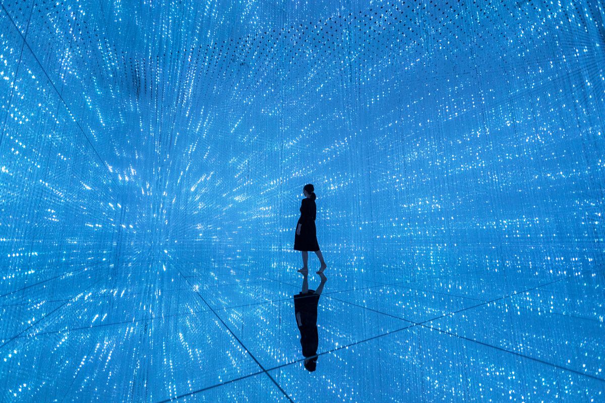 もちろん、既存の「Water Area(水に入るミュージアム)」も体験することができます。「The Infinite Crystal Universe」は小さな光の点を集合させて立体的に見せる光の彫刻。さまざまな色に変化するきらびやかな光の世界に入り込むことができます。