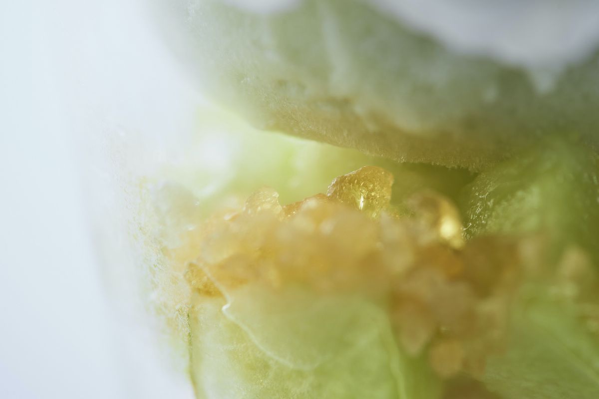 メロンパフェということだけあって、パフェの中には甘くてみずみずしいメロンソルベやメロンの果肉、そしてトップに飾られたまんまるのメロンゼリーなど様々な形でふんだんにメロンが使用されています。もちろん「ピエール マルコリーニ」らしさもばっちり。パフェの底に隠れているフィヤンティーヌチョコレートのサクサク食感と優しい甘さのホワイトチョコレートアイスクリームがメロンとマッチすることによって、芳醇かつやさしい味わいに仕上がっていました…!