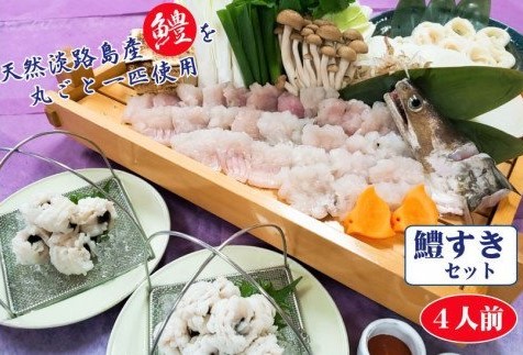 ①【6~8月限定!】天然鱧丸ごと一匹鱧すき・湯引きセット(4人前)淡路島特産玉ねぎ&手延べそうめん「淡路の糸」付き
