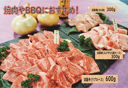 ・淡路牛300g×2、淡路豚(えびすもち豚)300g、淡路鶏300g