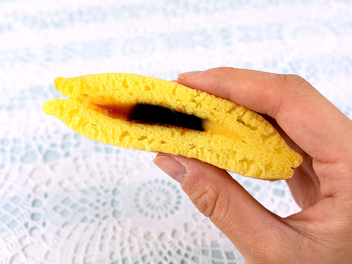 おいしさの決め手となっているのは、中心部に入っているカラメルソース。カラメルソースのほろ苦さが生地とカスタードクリームの甘さをより一層引き立て、大人な後味を残します。「甘すぎるのはちょっと苦手」という人でもこれならぺろっと食べられてしまいそう。