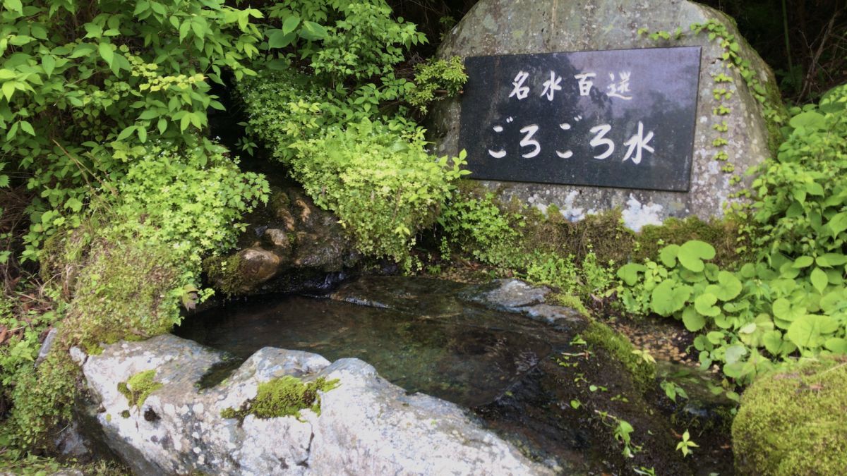 かりがね橋を渡り徒歩25分。山上川の旅館街から1kmほど上流にある湧き水スポットへ到着。洞川温泉郷はあちらこちらで湧き水が見られ、いくつかの水は「洞川温泉湧水群」の名で環境省の名水百選に選ばれてます。なかでも有名なのが「ごろごろ水」で、鍾乳洞をくぐって湧くミネラル豊富なアルカリ水は体にも良いと評判です。修験道の行者の宿場町としての歴史がある洞川では古くから神の水と伝えられてきました。