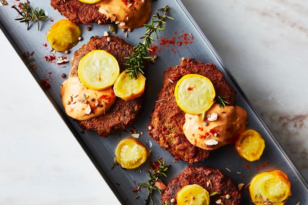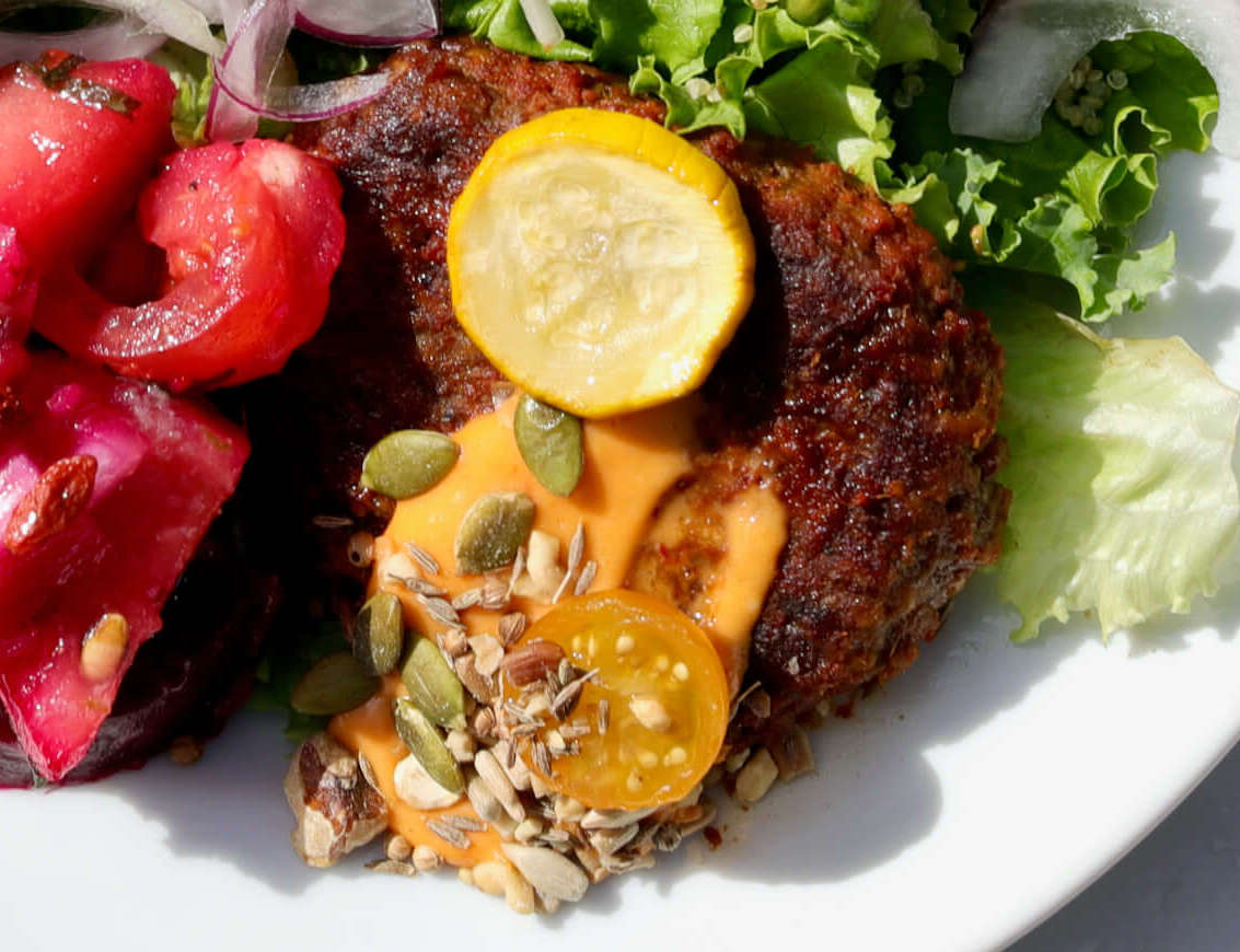 【ゼロミートハンバーグのケバブ風 豆乳ハリッサソース】
