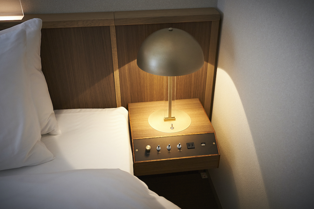 反対側にはサイドランプ、コンセント、USBポートがあります。ON/OFFのカチッと音が聞こえそうな照明スイッチのアナログ感とレトロなデザインが素敵。