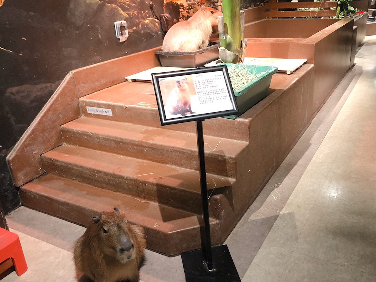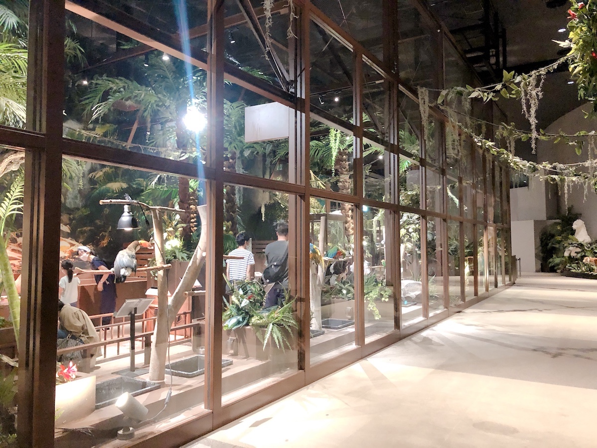 入ってすぐに見られるのが「Animal encounter(アニマルエンカウンター)」エリア。動物たちの出会いの場であり、私たちと同じ通路上をカピバラや亀たちが歩き回ります。上を見上げれば色鮮やかなくちばしを持つオニオオハシが飛び交うなど都会にいるとは思えない体験ができますよ。