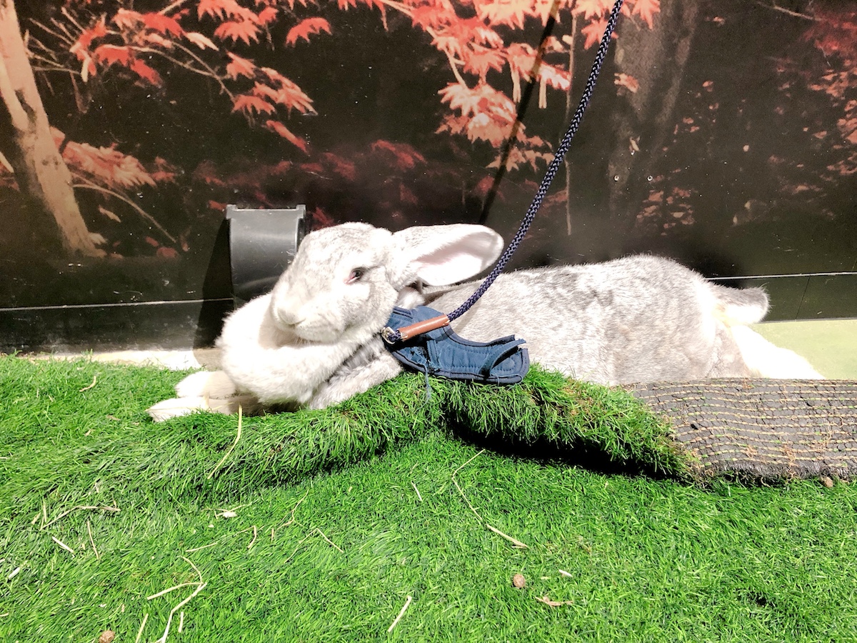 大きなうさぎもくつろいでいました。ほかにも中央ではふわっふわの毛が特徴のチンチラたちが群れをなしています。ぜひこの機会に触ってみてくださいね。