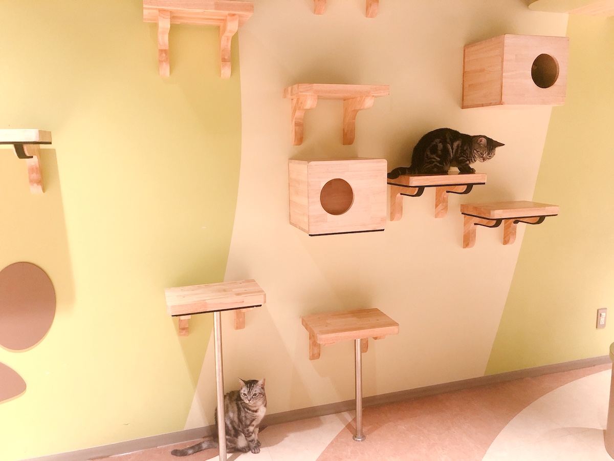 ねこ派のあなたは「ふれあい Chat house」へ!約20匹のねこたちが自由気ままに過ごす姿を見ることができます。狭い隙間に隠れたり、ソファーでごろんと寝転がっていたり、いろんな種類のねこたちがくつろぐ姿はいつまでも見ていられそうです。