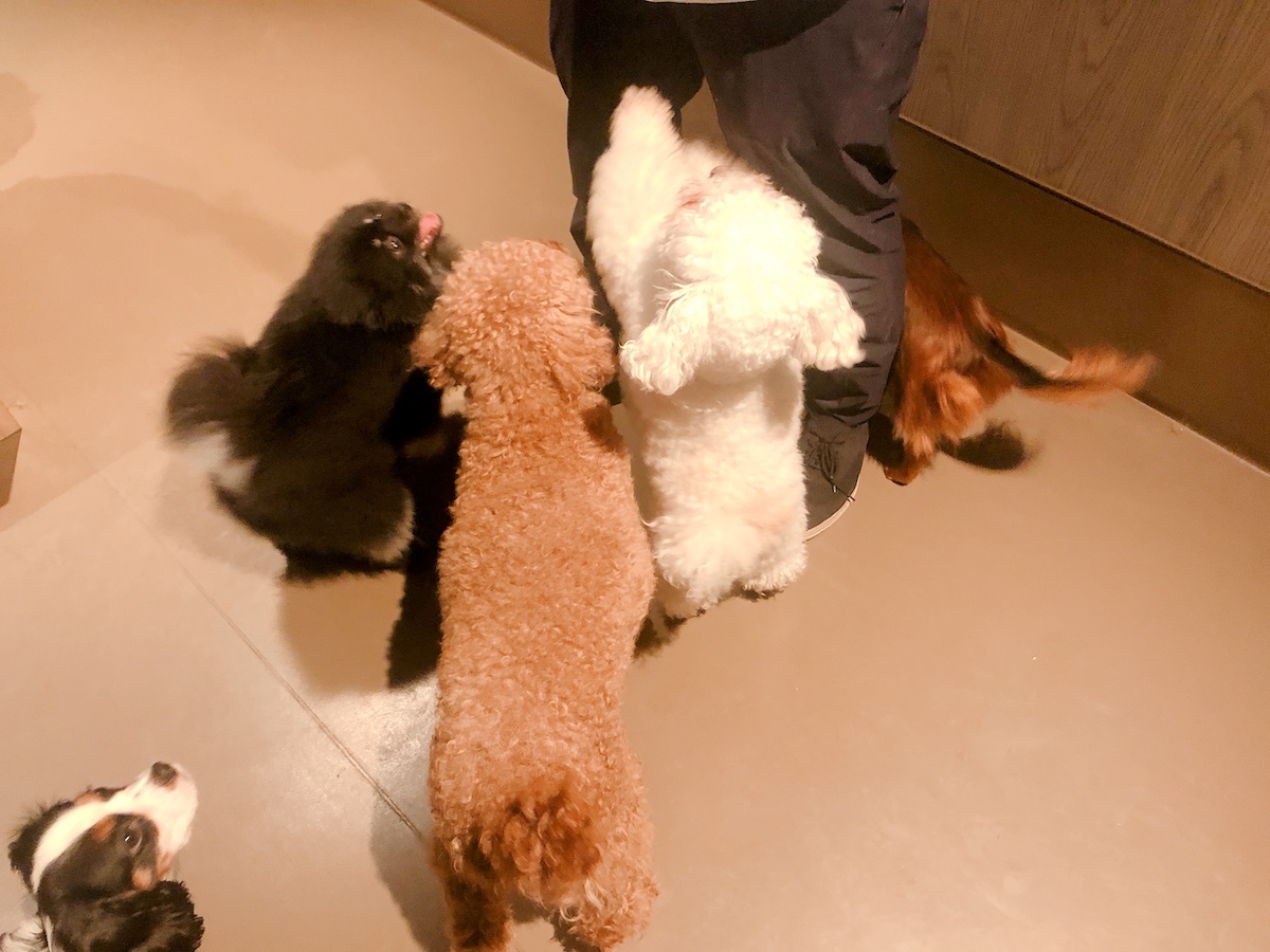「ふれあいDog park」では約30匹の小型犬がお出迎え!人懐っこい子ばかりで一斉に集まって来てくれました!さまざまな犬種を一気に見られるのも貴重な機会ですね。室内には椅子もあるので休憩しながらわんちゃんと戯れることができます。