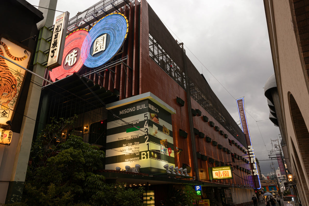 バブル期にはキャバレーやダンスホールなどが入店し、かつては“昭和のナイトスポット”として妖艶な光を放っていた「味園ビル」です。