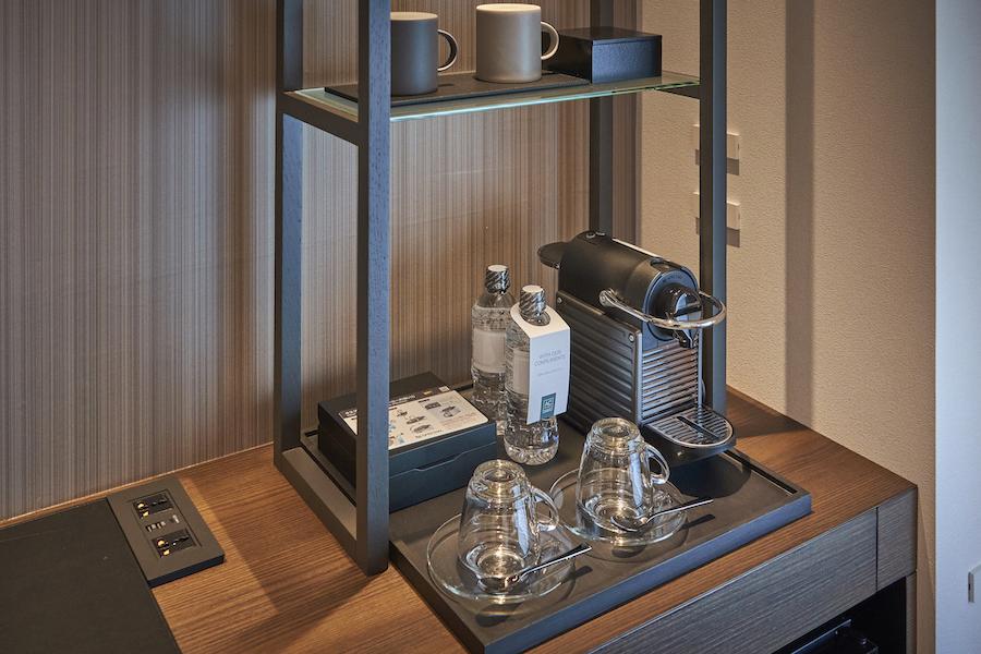 客室に置かれているライフスタイルブランド「MOHEIM(モヘイム)」のマグカップ2500円は購入も可能。ホテルのモダンなデザインを体現するようなアイテムで、おみやげに欲しくなりますね。