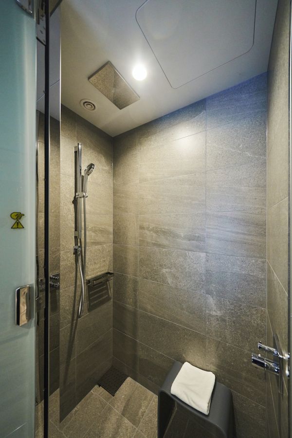 スーペリアキングのバスルームは、バスタブはなくシャワーオンリーですが、十分な広さがあります。天井にあるレインシャワーを浴びれば、仕事の疲れもすっきり吹き飛びます。