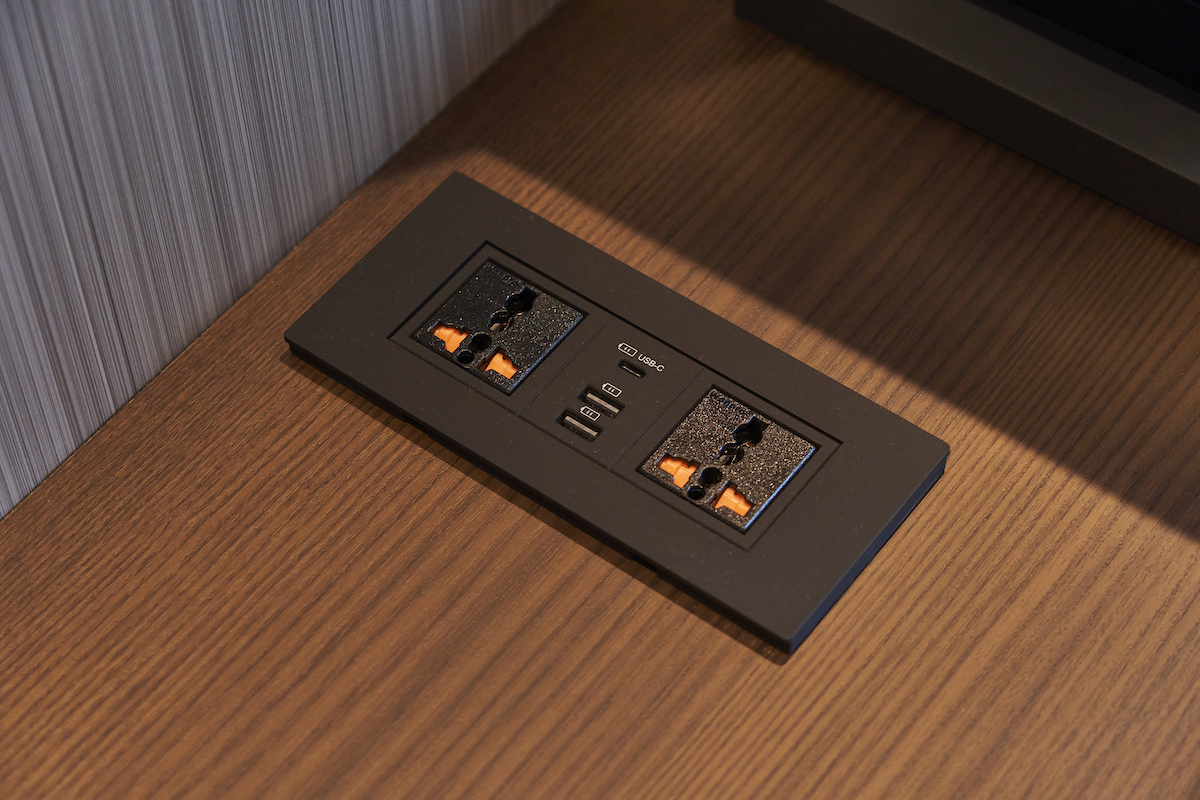 デスクには、電源2口・USB2口・Type-C1口がセットされています。最近では、Type-Cを使うデバイスも増えてきたので、これはうれしいですね。