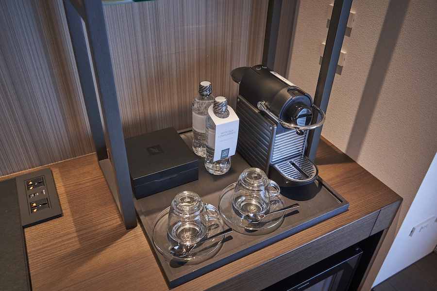 客室のなかでも特徴的なのが、洗面エリアがアイランド式になっていること。ACホテルのデザインコンセプトである“シームレス”が、ここに表現されています。室内はどこを見てもヨーロピアンモダン×ミニマルで、必要最低限のものがあるべき場所に収まっています。