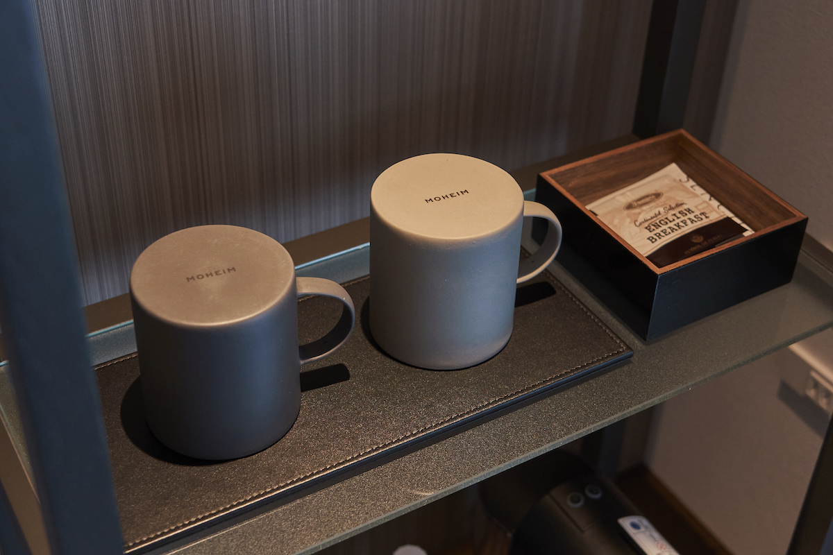コーヒーや紅茶は、人気のライフスタイルブランド「MOHEIM(モヘイム)」のマグカップでいただきましょう。シンプルでモダンなデザインはとても人気で、買って帰る人もいるそう。フロントで購入可能です。