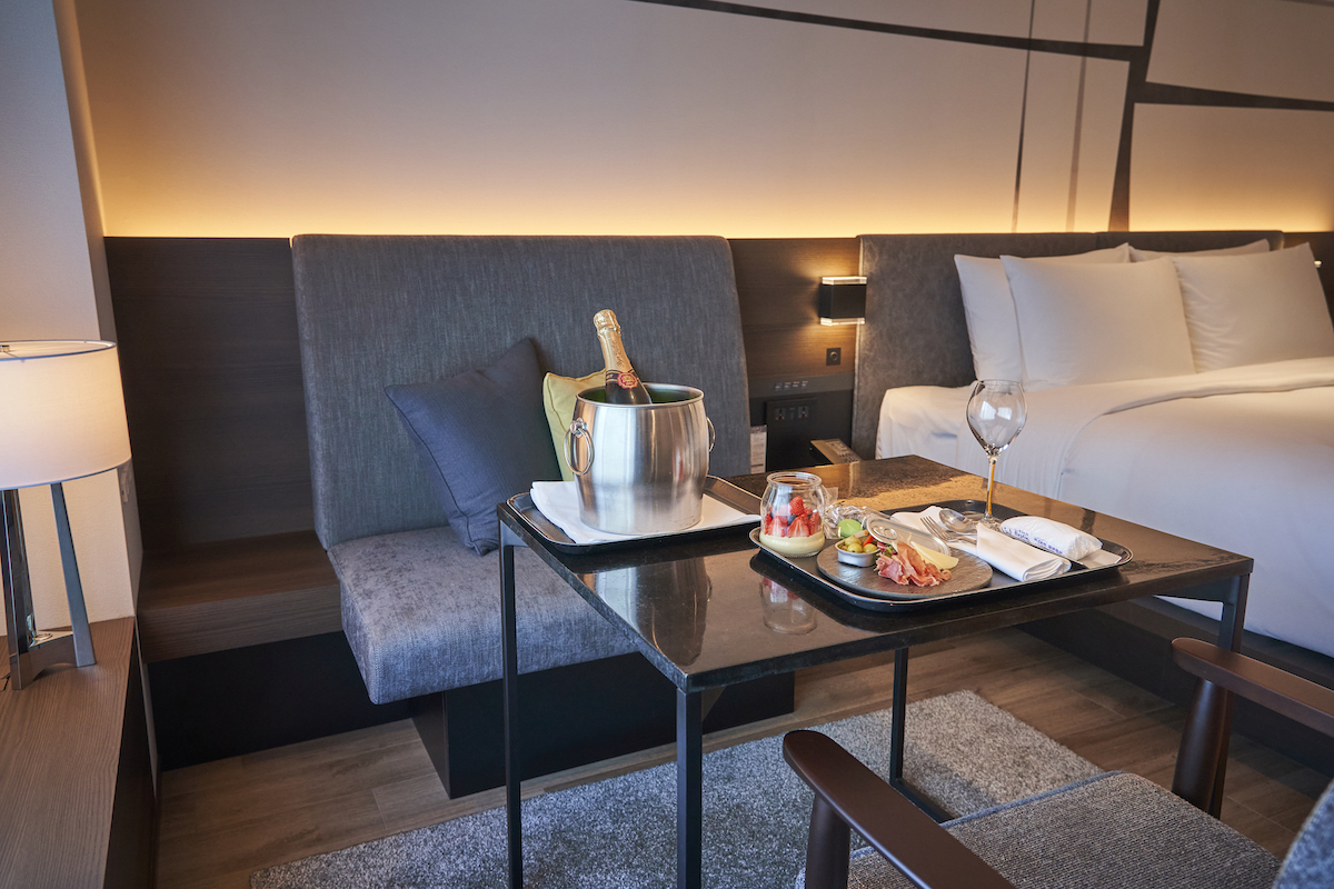 希望する時間(21時まで)に客室に持ってきてくれるので、ワインとおつまみが届く時間を楽しみに、集中して仕事ができますね。もちろんこの宿泊プランは、おひとりさまでもOK!