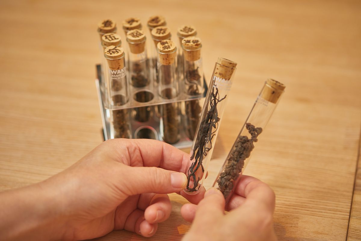 カフェでは、茶葉の形と香を目で見て、香りでメニューをチョイス