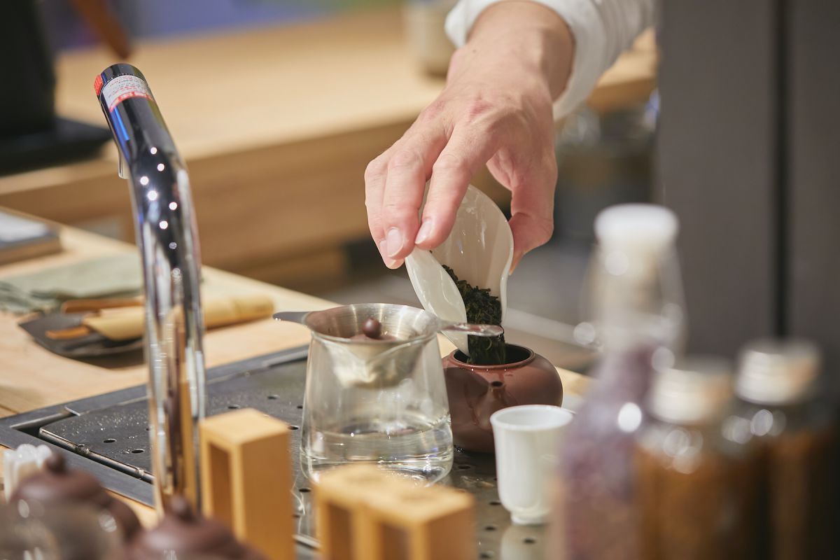 自分で淹れるタイプの台湾茶のお店もありますが、ここでは一煎目と二煎目はお店の方が淹れてくれます。台湾茶の本当のおいしさを伝えるためのサービスですね。お湯の追加サービスもあるので、買って帰りたい人は、三煎目、四煎目の味をここで試しておくのもいいかも。