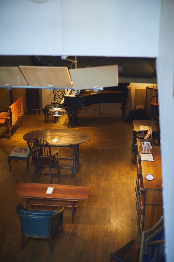 多くの席が奥にあるグランドピアノに向いていますが、壁に面したプライベート感強めの席もあり、その日の気分に合わせて自分の居場所を選べます。