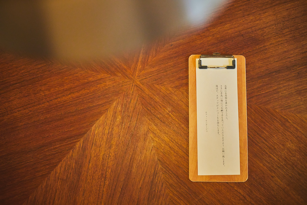 さて、「カフェ・モンタージュ」には、小さなルールがあります。それは、席についたらまず洗面所に行って石鹸で手を洗うこと。アルコール除菌ではなく、石鹸にしているのは楽器を扱う音楽家たちの指先を守るための配慮でもあります。ハンドクリームが添えられていて、店主のやさしさが滲み出るよう。