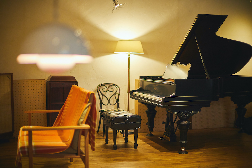 カフェに入るときに降りてきた階段、そこは演奏会が行われるときの客席になります。音を奏でる指先の動きまで手にとるように見え、息づかいまで聞こえてきそうな距離で生の音を楽しむ時間。それは絶え間なく情報が流れ込んでくる時代に、ほっと息抜きできる最高に贅沢な時間かもしれません。