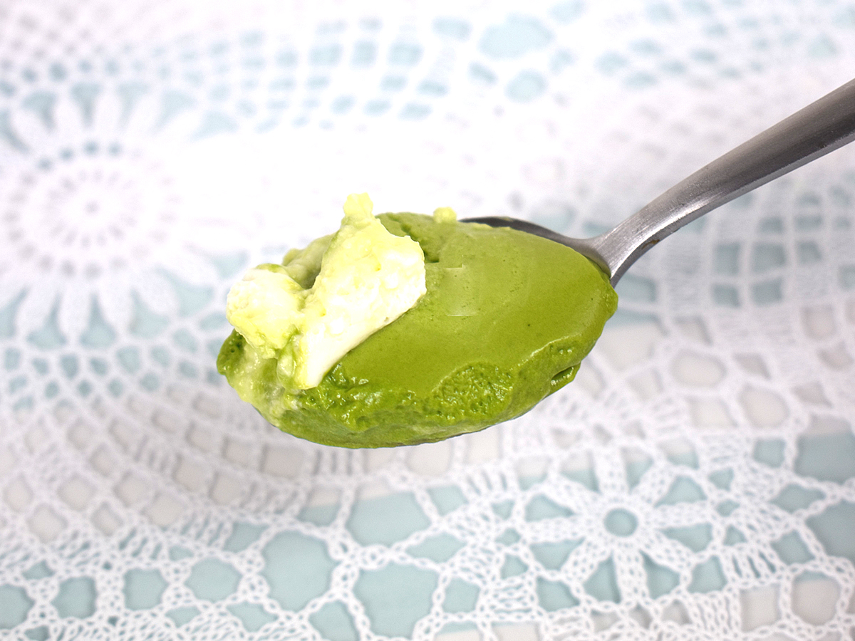一番上の宇治抹茶ムースから食べてみると、舌の上ですっと溶けていく感覚にびっくり。なめらかでミルクの香りが強く、まさに抹茶ラテのような味わいです。素朴な甘みの中の、ほんのりとしたほろ苦さが味に深みをプラスしています。クリームのふわっと軽くてすっきりとした甘さもGOOD!