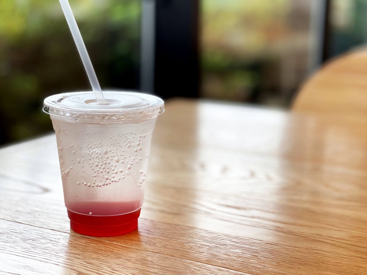 セットドリンクには天然炭酸水がおすすめ。県外にはほとんど流通しない新潟県産イチゴ・越後姫の濃厚な甘さとローズマリーのさわやかな香りが絶妙なシロップを、会津の天然炭酸水で割ったドリンクです。軟水の炭酸水ならではのやわらかな口当たりが特徴。