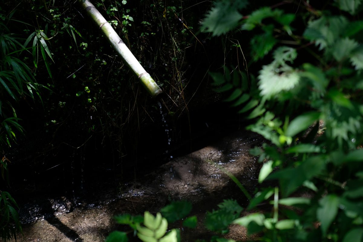 山肌に掛けられた竹筒からとうとうと流れる水。目をこらさないと気づかないようなこの竹筒から流れる水こそ、「梶原太刀洗水」です。その清らかで良質な水は、定番スポット「銭洗弁財天」の水などとともに、「鎌倉五名水」のひとつに数えられています。