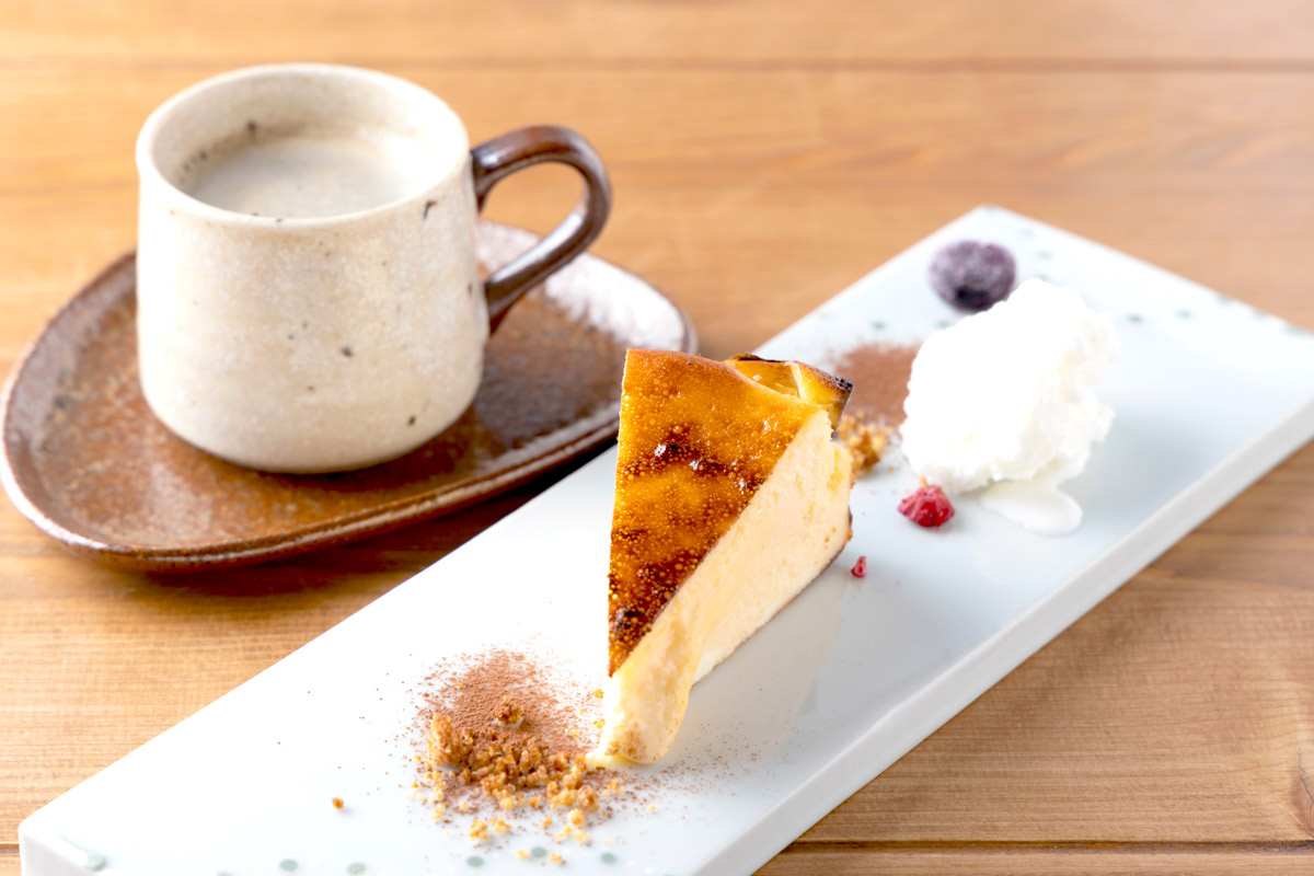 カフェスペースからは、木工芸&漆芸アーティストの田中瑛子氏が、山中式ろくろを自在に操り木地を挽く様子を見学できます(不定期)。ガラスで仕切られた工房を眺めながらのカフェタイムは贅沢な体験!カフェメニューは「ブリュレチーズケーキ」495円や「コーヒーゼリーカフェラテ」550円などが人気。