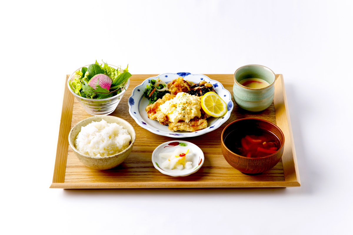 1の1食堂の人気定番メニューは「チキン南蛮定食」1080円。シェアキッチンでは地元で開業を目指すシェフたちが出店し、給食当番としていろいろな料理を提供しています。給食当番は公式サイトでチェック!