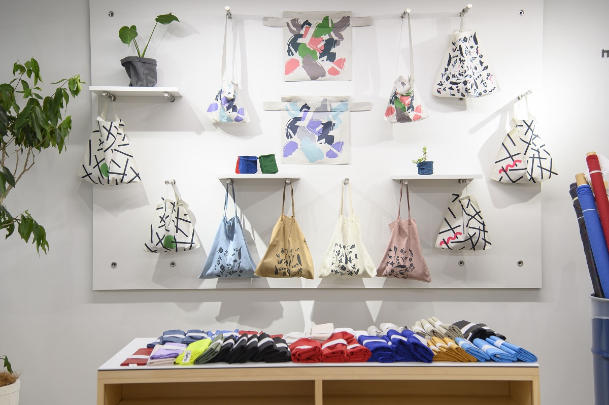 「fa-bo(ファーボ)」には、環境にやさしい素材や炭素繊維を使った耐震補強材など、最先端のファブリック・加工技術を展示しています。サスティナブルを目指す繊維の世界を体験でき、新しい発見がありそう!染色や、編み物、オリジナルクッション作り体験(見学無料、体験500円)もできます。さらに、併設するファクトリーショップ「mono-bo(モノーボ)」ではアップサイクルをテーマに作られたバッグなどのデザイン性が豊かな雑貨を販売しています。