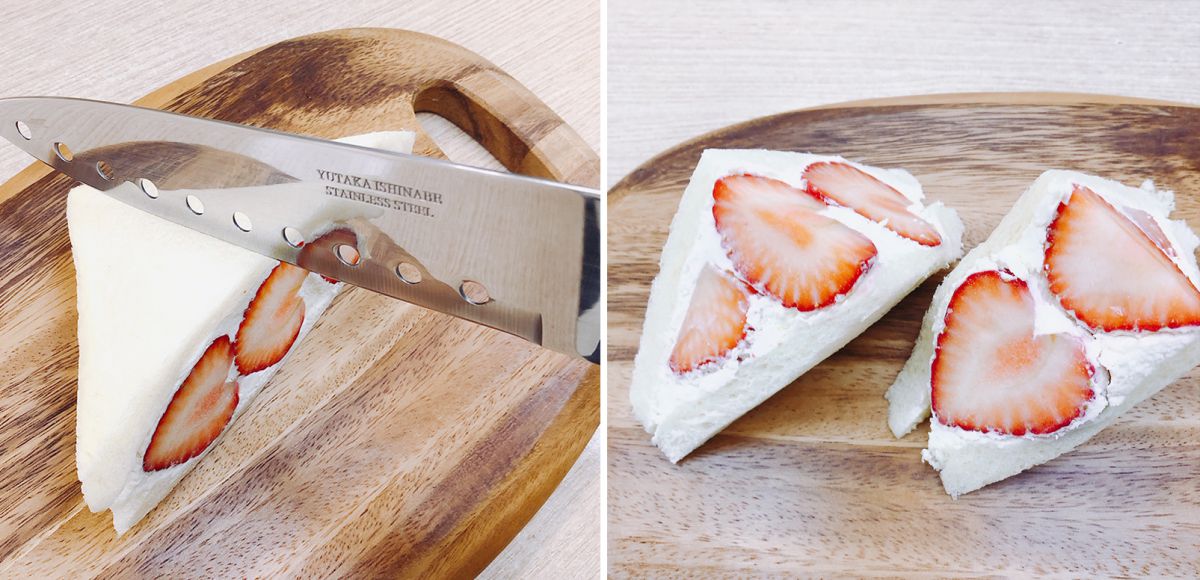 そんなときは三角形の角から斜辺に向かって、少し温めた刃をゆっくり入れていくと断面がキレイにカットできるそうですよ。
