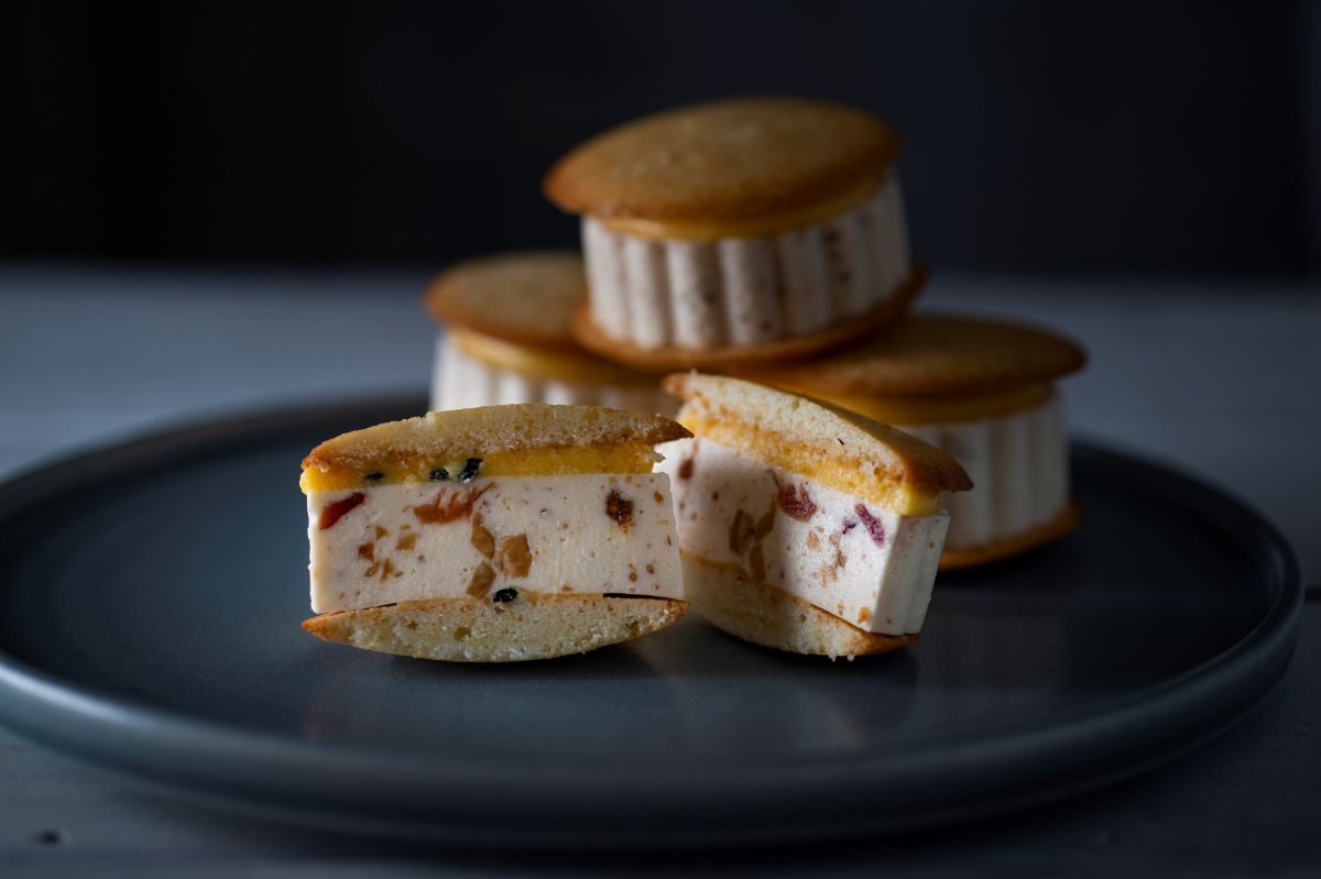 お茶と一緒に味わいたい「フロマージュ・マム」(346円)は、芳醇な発酵バターとラムのしっとりとしたラングドシャに、まろやかなミルクの味わいのフロマージュブランとパッションフルーツバターをたっぷりサンド。華やかな味わいのハーモニーが楽しめます。