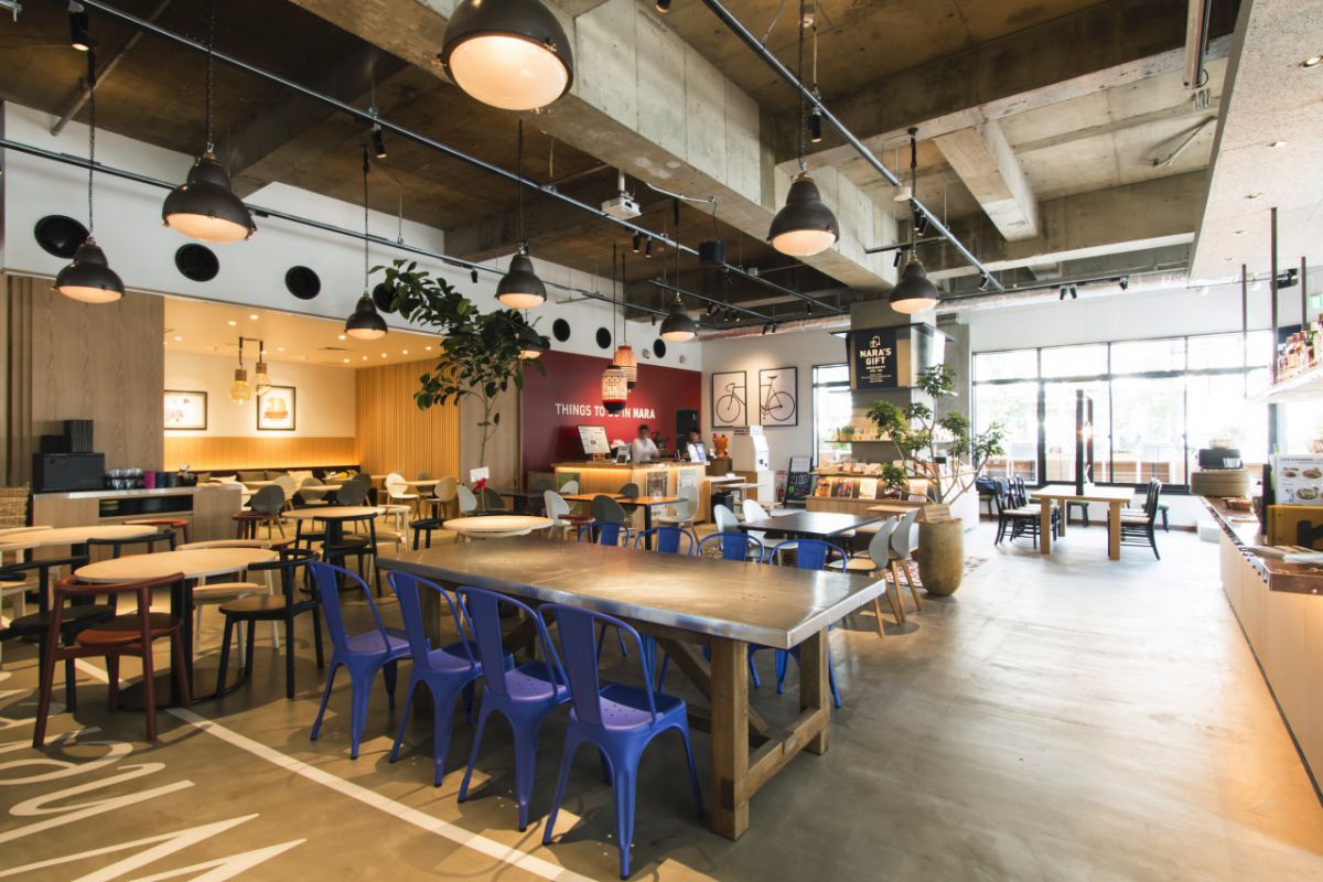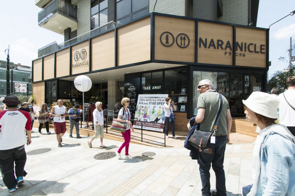 興福寺やならまちの最寄駅・近鉄奈良駅から徒歩約5分。「CAFÉ ETRANGER NARAD」は、奈良市観光センター「NARANICLE(ナラニクル)」の中にあります。お目当ての観光スポットの情報を入手すると同時に、お茶やごはんも楽しめる場所です。