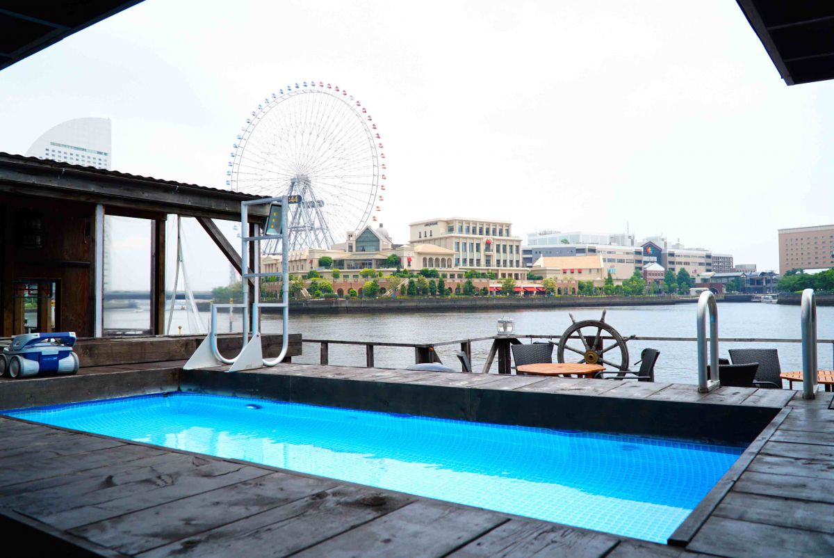 テラス席は写真のプールを囲むように並んでいます。プールは鑑賞用のため入ることはできませんが、海に浮かぶプールは眺めているだけで涼しい気分になってきます。
