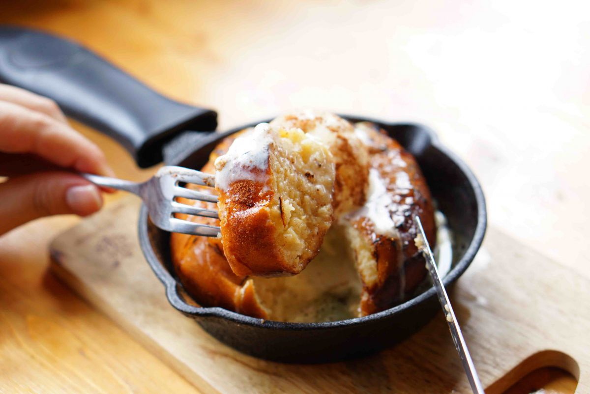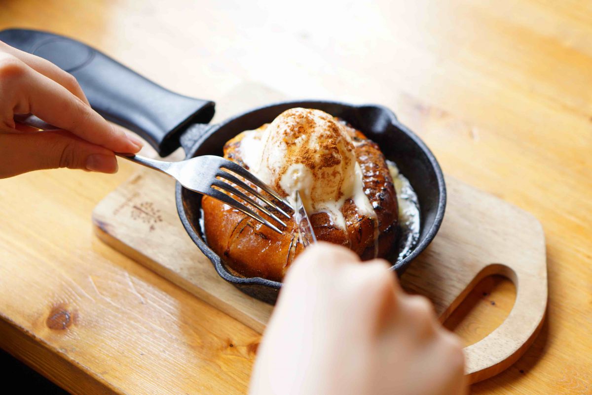 特製の卵液に1日〜1日半漬け込んだベーグルを、両面をじっくり焼き上げているため、外はカリッと中はもちもち食感が楽しめます。カラメルのほんのりとした苦味がアクセントになっていて、全体的に甘さは控えめ。熱いうちにいただけば、アイスの冷たさとのハーモニーも楽しめます。初めは大きいと感じたベーグルも、あっという間に完食してしまいました。