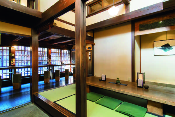 奥まった場所にある小座敷。天井は吹き抜けており解放感があります。